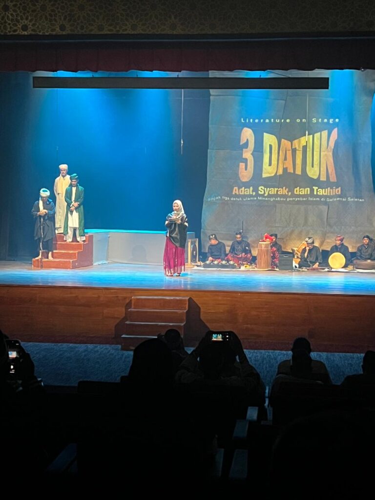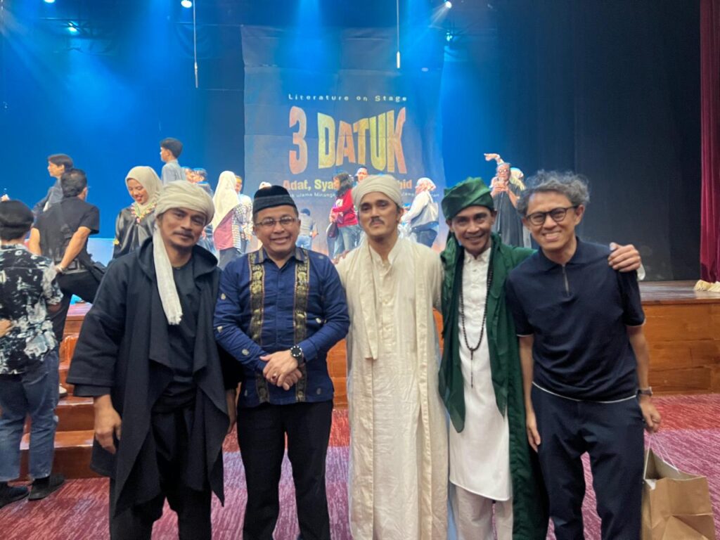 Di bawah langit kebudayaan yang dipenuhi makna dan napas spiritualitas, sebuah panggung megah bertajuk Literature On Stage “Tiga Datuk: Adat, Syarak, dan Tauhid” sukses digelar pada Sabtu malam, 28 Maret 2026, pukul 19.00–21.00 WIB, di Gedung Kesenian Miss Tjitjih.